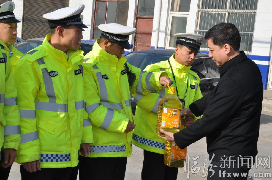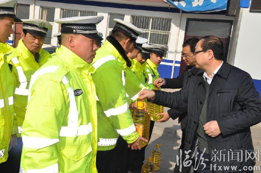 縣委常委劉春林對廣大公安交警恪盡職守、盡責履職、堅守工作崗位、舍小家為大家的過硬的紀律作風和優良的警容風貌給予肯定,并給大家送去了慰問品。