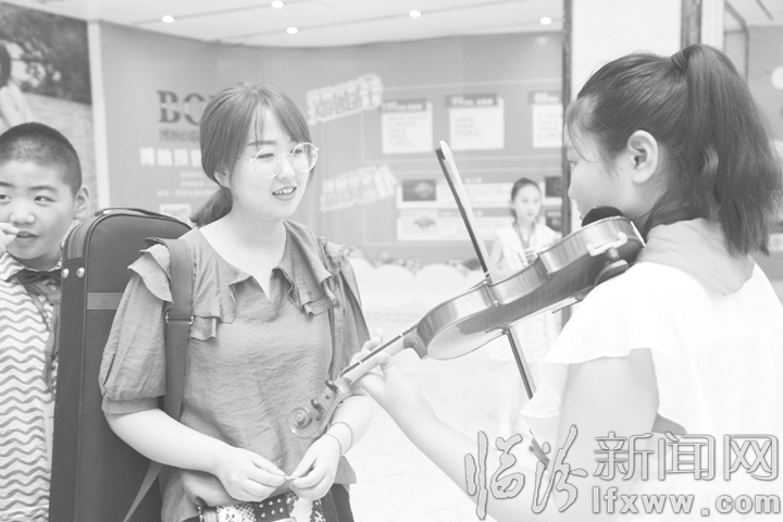 小選手郭佳瀅用小提琴演奏了一曲水墨畫(huà)意境的《漁舟唱晚》,生動(dòng)地刻畫(huà)了片片白帆隨波起伏,浪花飛舞,一片歡騰景象。聲聲入耳,撥動(dòng)著觀眾的心弦。