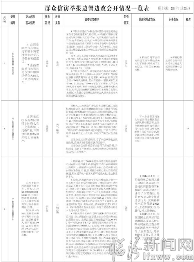 臨汾市關于中央生態環境保護督察“回頭看”交辦群眾信訪舉報問題邊督邊改情況通報