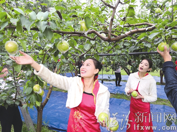 “我現(xiàn)在在隰縣玉露香梨園內(nèi),梨園采用標(biāo)準(zhǔn)化管理、高科技設(shè)備、規(guī)范化經(jīng)營(yíng),如今,正是豐收的季節(jié),看!鮮翠欲滴的梨果壓彎枝頭,游人們絡(luò)繹不絕爭(zhēng)先采摘。”