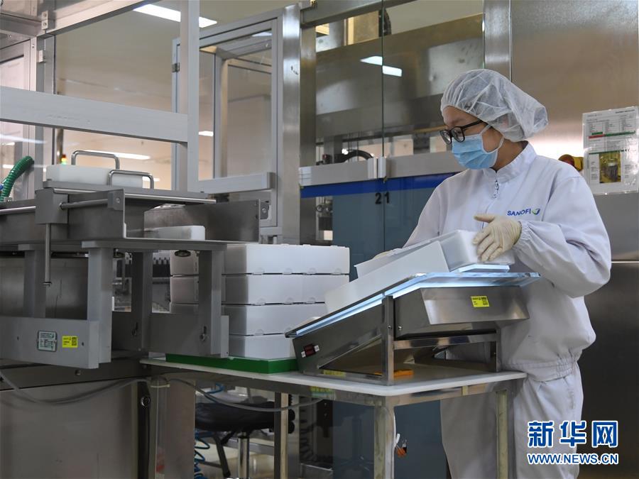 10日上午,記者走進位于北京經濟技術開發區的賽諾菲(北京)制藥有限公司,一條組裝及包裝甘精胰島素注射液的生產線機器轟鳴作業,工人們正有序操作著設備,一箱箱成品藥不斷下線?!懊總€班次能包裝6萬余支產品,這比疫情發生前產量還要高一些?!鄙a線技術員趙健介紹。