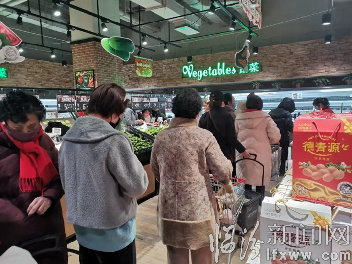臨汾新聞網訊 1月27日,市區大豐蔬鮮生活超市五洲國際廣場店蔬果區有不少前來選購蔬菜、水果的市民。