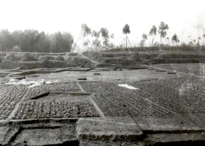 三星堆地點城墻中段局部(由東向西攝,1981年)。圖據三星堆博物館