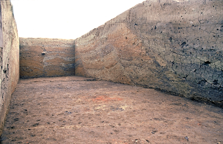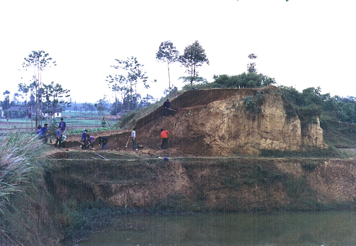 1999年發掘月亮灣城墻探方剖面(由西向東攝)。圖據三星堆博物館