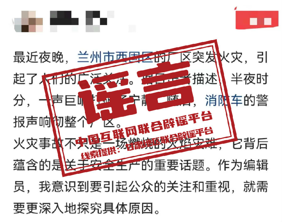 謠言:甘肅省蘭州市西固區(qū)一廠區(qū)突發(fā)火災(zāi)?