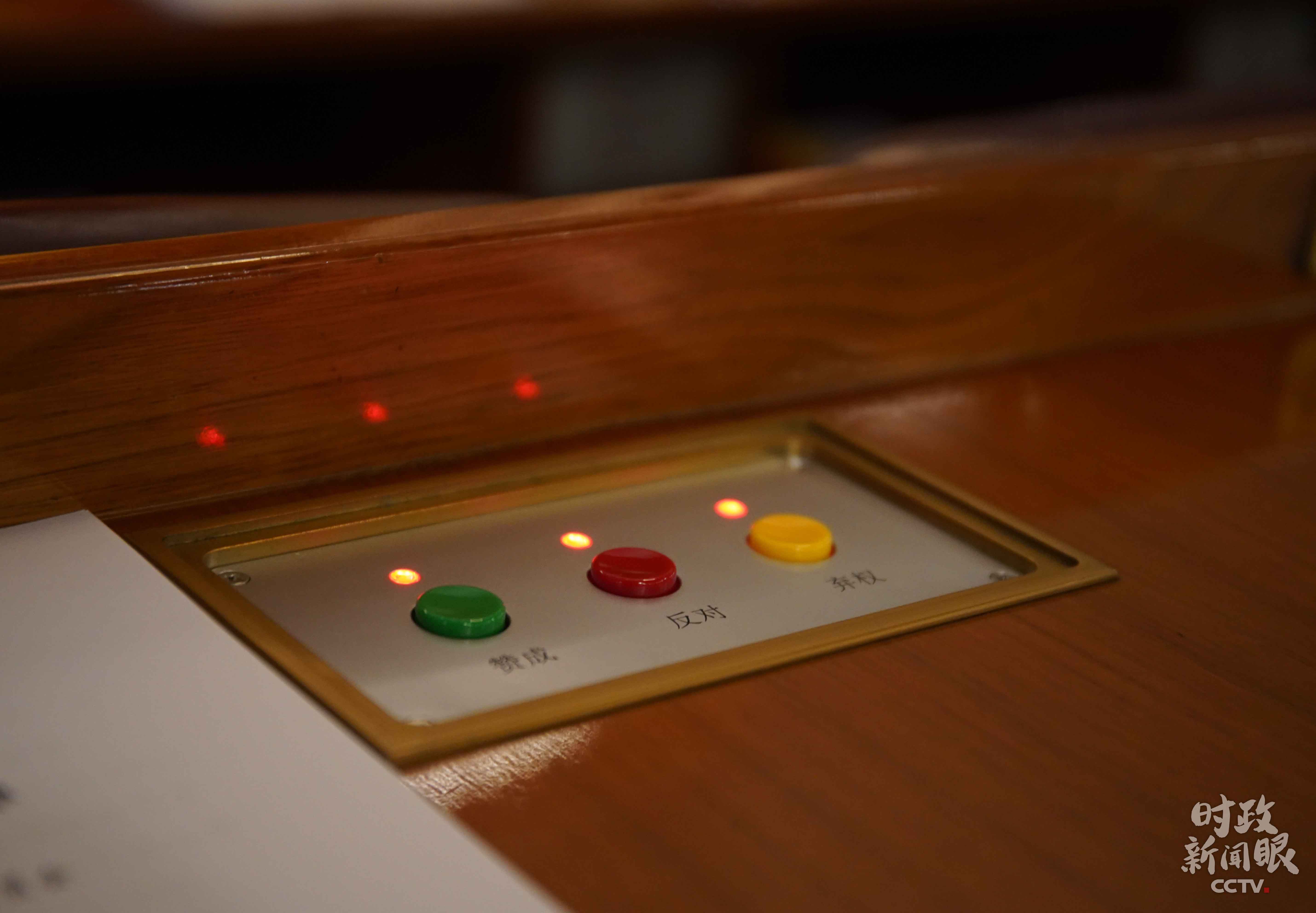 △這是全國人大代表座位上的表決器。(總臺央廣記者潘毅拍攝)