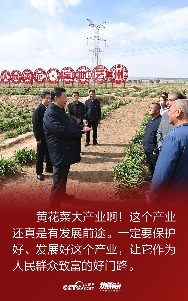 習近平說:“黃花菜大產業啊!這個產業還真是有發展前途。一定要保護好、發展好這個產業,讓它作為人民群眾致富的好門路。”