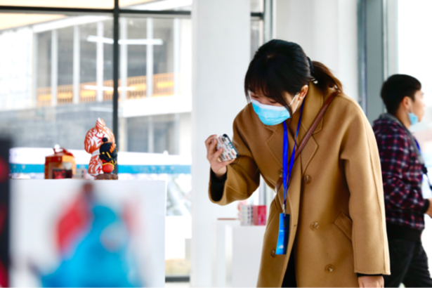 媒體記者被山西智創(chuàng)城4號基地內(nèi)的文創(chuàng)產(chǎn)品吸引。新華網(wǎng) 發(fā)