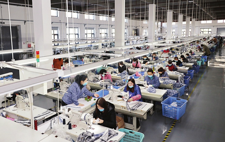 企業積極加入扶貧行列。圖為山西太子龍服飾有限公司平順車間的生產場面。