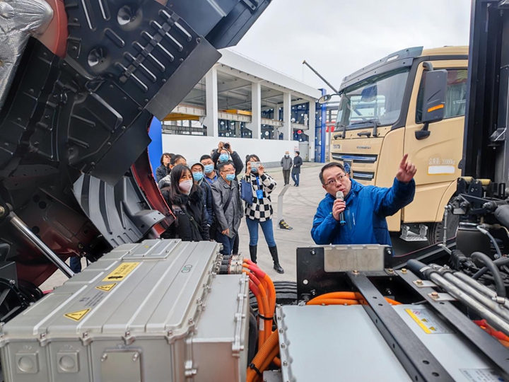在美錦能源的廠區,一輛重卡引起了大家的注意。“這是一輛氫燃料電池重卡,在加滿氫之后續航能夠達到400公里,每100公里只需要200元左右,但是柴油車則需要280元左右,使用氫能源車,也大大縮減了成本費用。”姚錦城向記者們介紹著氫燃料電池重卡在費用上的優勢。