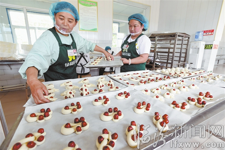5月18日,霍州市綠和祥食品有限公司員工正在加工制作霍州花饃。 記者 趙俊堂 閆銳鵬 攝影報道