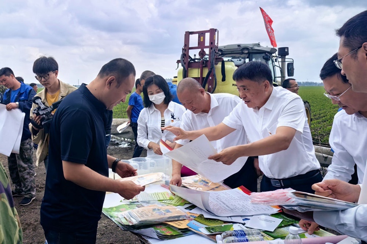 黑龍江省農業農村廳種植業管理處工作人員在哈爾濱市雙城區地頭,向農民發放科學用農藥資料(2023年6月11日攝)。學習貫徹習近平新時代中國特色社會主義思想主題教育工作會議召開以來,黑龍江省農業農村廳種植業管理處將理論學習與實際工作相結合,深入“田間地頭”調查研究、深入推進“千萬噸糧食增產計劃”,助力黑龍江省當好維護國家糧食安全“壓艙石”,將主題教育成果融入到維護國家糧食安全的具體實踐中。新華社發