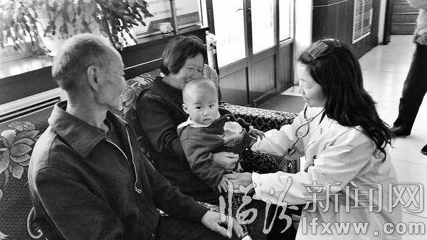 臨汾新聞網訊 安澤縣杜村鄉郭莊是革命老區,由于地理位置比較偏僻村民們求醫問藥很不方便。二十一年來,郭莊村衛生所的醫護人員李林茂和郭雪梅夫妻倆克服重重困難,為村民們的健康保駕護航,被評為安澤縣甲級村衛生所。圖為郭雪梅為村里的孩子聽診。記者 劉晚 攝
