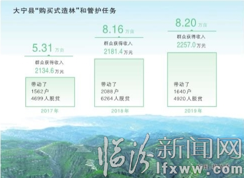 思路一轉天地寬。2017年,大寧的脫貧攻堅造林專業合作社如雨后春筍,短時間內發展到37個。3年多來,大寧縣共完成“購買式造林”21.67萬畝,使參與群眾獲得勞務收入6573萬元。大寧縣37家脫貧攻堅造林專業合作社共有社員1991名,其中建檔立卡貧困人口1578名。2019年人均年勞務收入超1.5萬元。