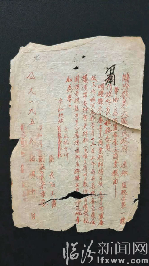 臨汾新聞網(wǎng)訊 “臨汾”“金殿”“河南”……一張稅收通知怎么能把這幾個(gè)地方聯(lián)系在一起呢?看過之后才明白這張有“區(qū)長”“副區(qū)長”署名的通知,系我市“臨汾縣”今堯都區(qū))68年前所印刷,真實(shí)地再現(xiàn)了當(dāng)時(shí)的稅收、稅務(wù)機(jī)構(gòu)、行政區(qū)劃等情況。