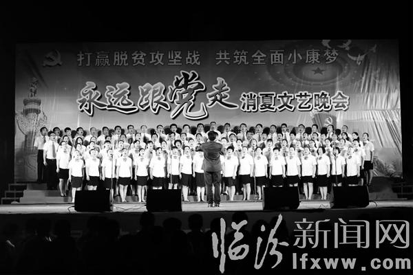 臨汾新聞網訊 7月30日晚,汾西縣舉行了“打贏脫貧攻堅戰共筑全面小康夢永遠跟黨走”消夏文藝晚會。晚會以歌曲、舞蹈、汾西干口等形式宣傳了黨的精準扶貧戰略,激發了全縣黨員干部干事創業的激情,凝聚了黨建扶貧正能量。 侯建兵 攝