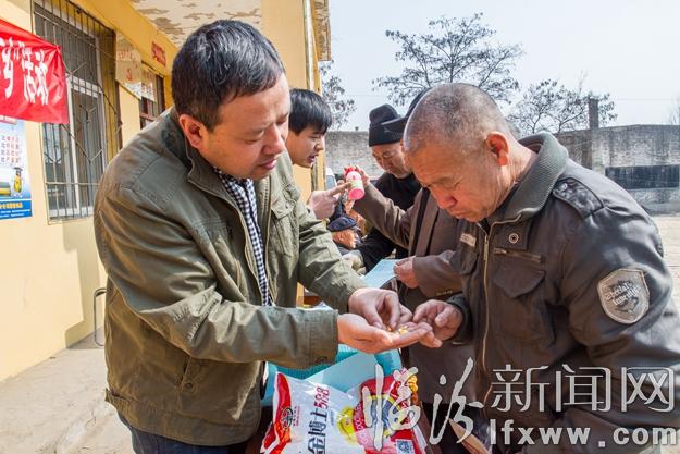 文化交流會現場,該村“第一書記”馬會平向農民“推銷”良種。