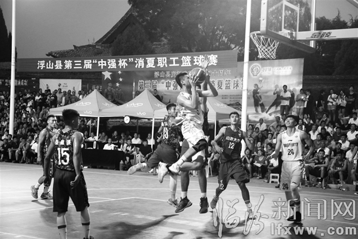 臨汾新聞網訊 8月8日晚,浮山縣第三屆“中強杯”籃球賽特邀山西大學隊和首都經貿大學隊舉行表演賽。