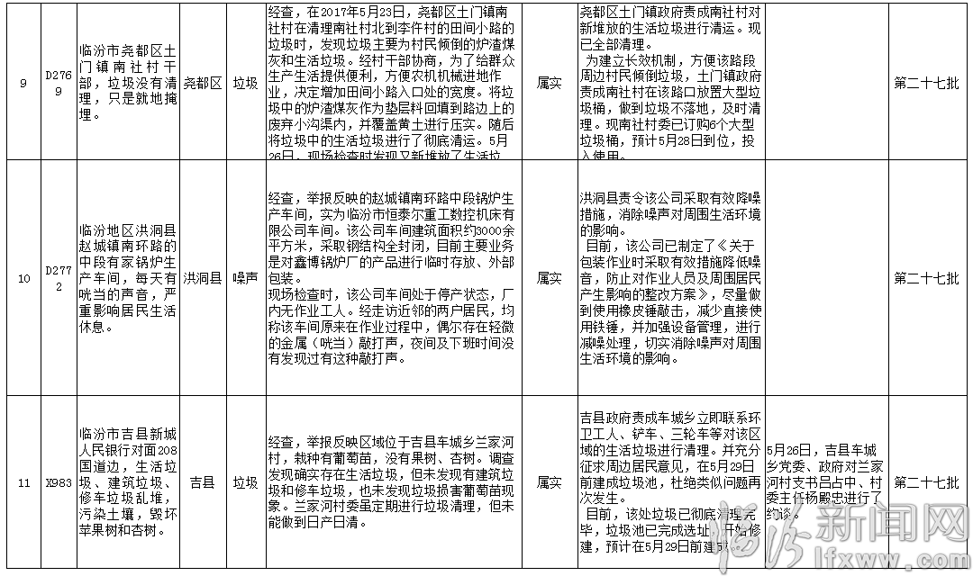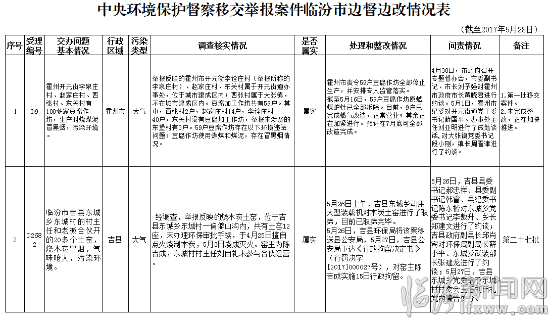 附:中央環境保護督察移交舉報案件臨汾市邊督邊改情況表