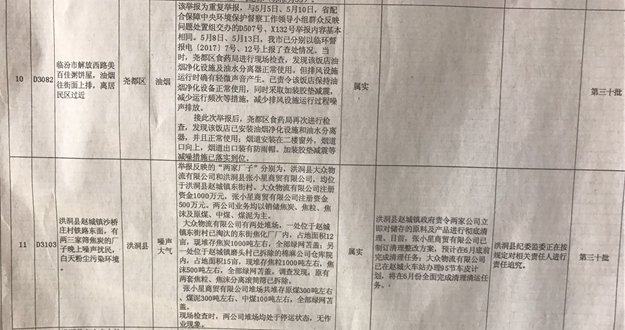 中央環境保護督察移交舉報案件臨汾市邊督邊改情況表
