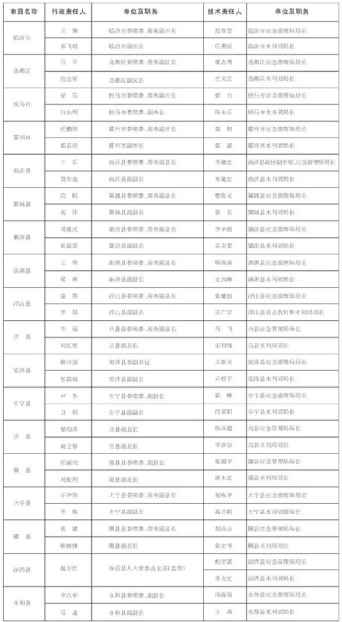 臨汾市2023年防汛抗旱責任人名單