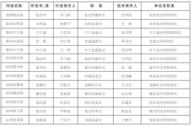 臨汾市2023年重點河道(段)防汛責任人名單