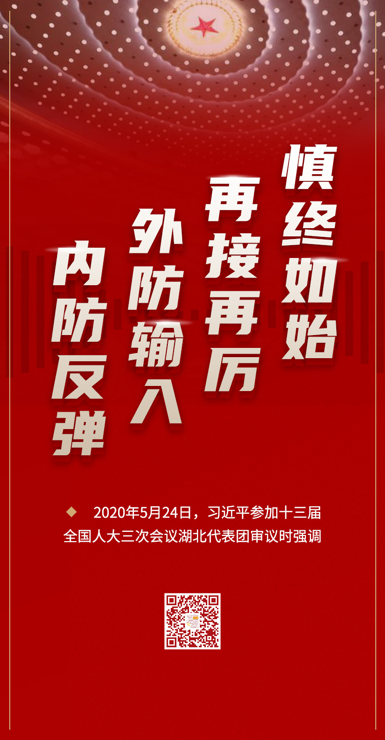 習近平強調,當前,境外疫情擴散蔓延勢頭仍然沒有得到有效遏制,國內個別地區聚集性疫情仍然存在,湖北有時還出現散發零星確診病例,無癥狀感染者每天還有新增。針尖大的窟窿能漏過斗大的風。要時刻繃緊疫情防控這根弦,慎終如始、再接再厲,持續抓好外防輸入、內防反彈工作,決不能讓來之不易的疫情防控成果前功盡棄。
