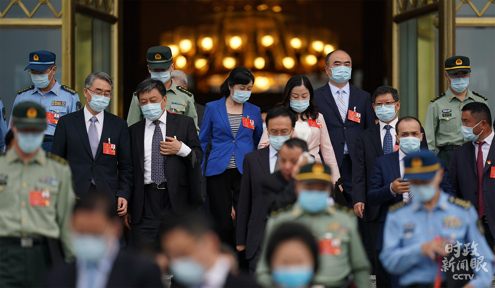 △5月25日,十三屆全國人大三次會議第二次全體會議結束后,代表們走出人民大會堂。(總臺國廣記者李晉拍攝)