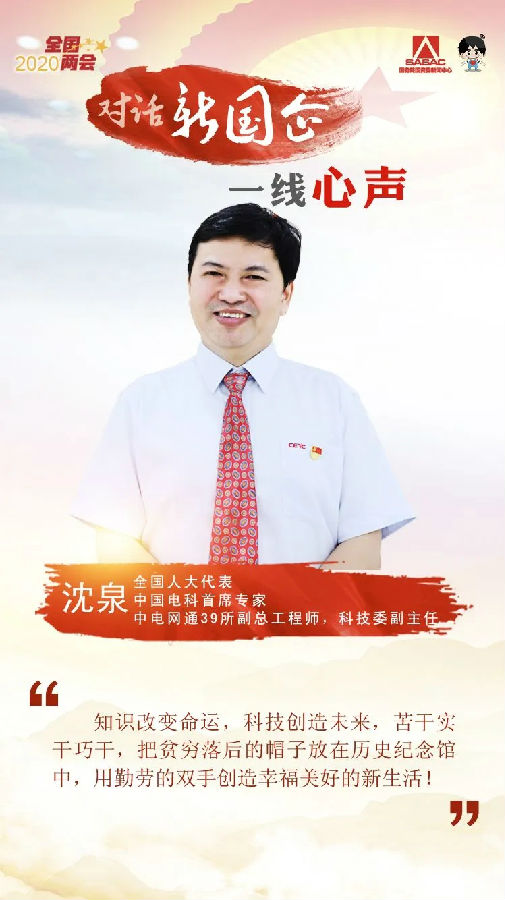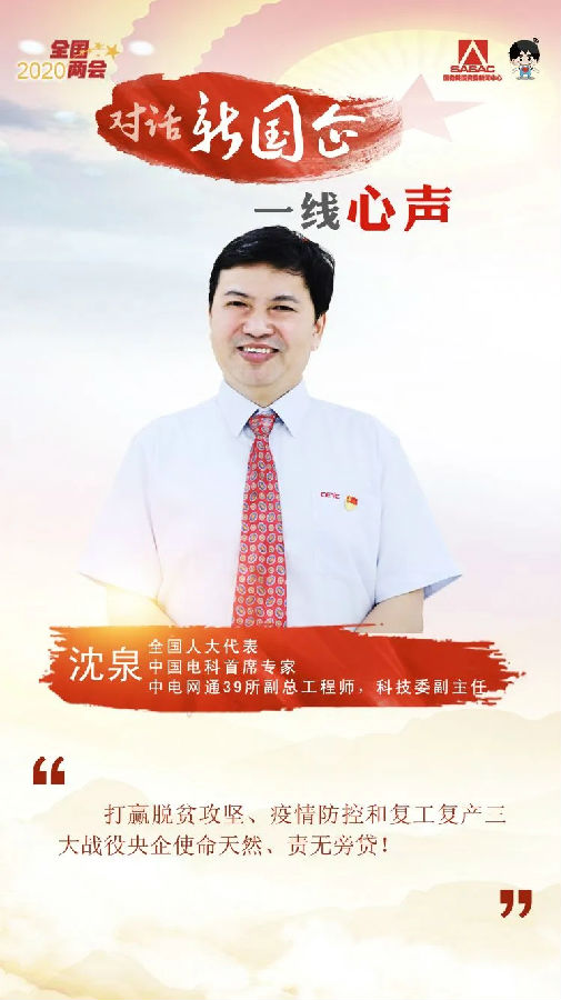 今天為您推出“對話新國企·一線心聲”融媒體訪談第二場,邀請全國人大代表、中國電科首席專家、中電網通39所副總工程師 沈泉做客中青網,圍繞央企疫情防控和扶貧攻堅等話題與網友進行了交流。