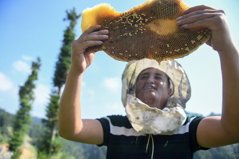 △十八洞村村民龍先蘭學習養蜂技術,因地制宜發展養蜂產業,逐漸成為養蜂大戶,還收獲了甜蜜的愛情。