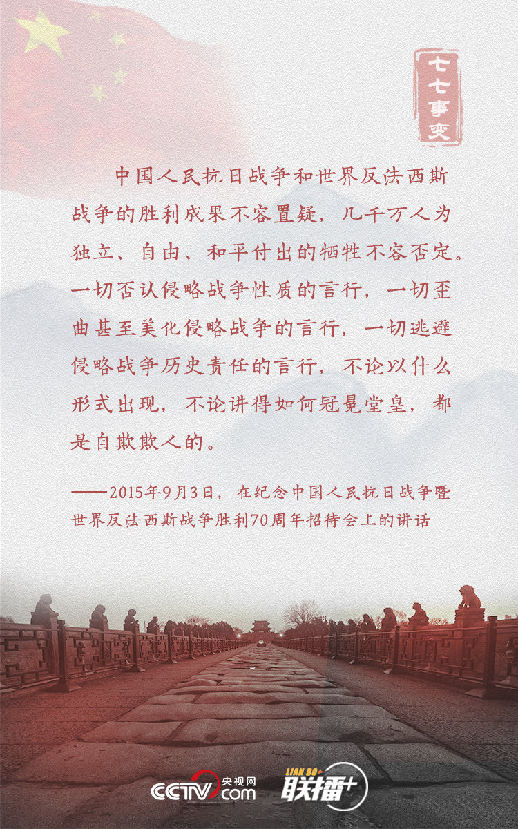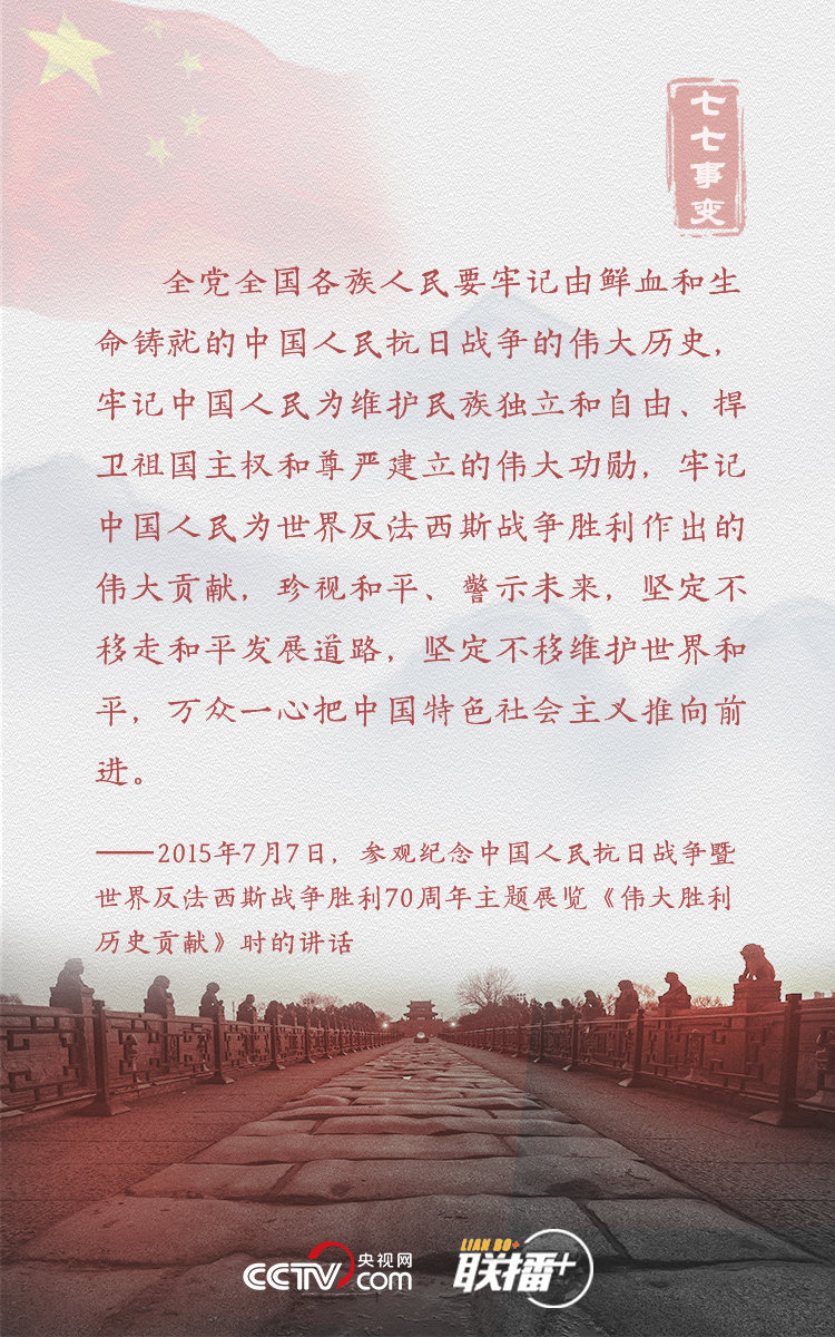 在全民族抗戰爆發83周年之際,央視網《聯播+》特梳理習近平總書記相關論述,與您共同緬懷革命先烈,重溫抗戰精神,汲取前行力量。