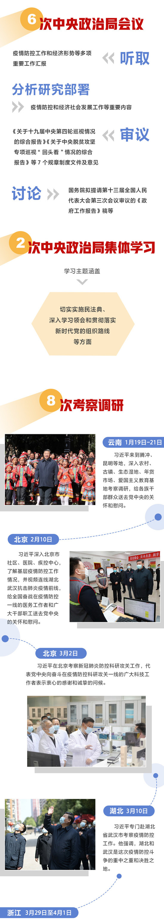 細數今年上半年,習近平夙夜在公,勤勉工作,不斷刷新“忙碌指數”:數十次出席重要會議部署各項工作,8次國內考察,調研足跡遍及7省區市,3次出席國際重要會議并發表講話,20余次致信、回信海內外人士,60次就疫情防控等話題與40余位外國政要和國際組織負責人通電話……人民網·中國共產黨新聞網推出系列圖解報道,帶您全方面回顧習近平的2020上半年。