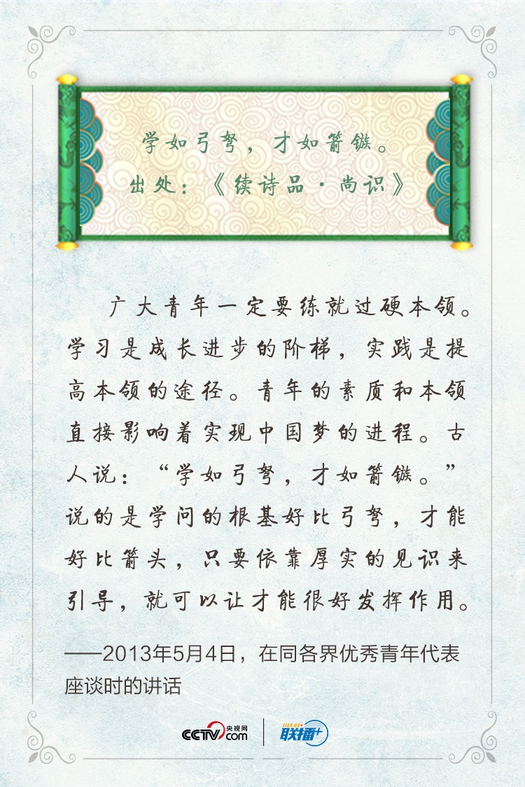 青年興則國家興,青年強則國家強。黨的十八大以來,習近平總書記在同青年談心、給青年回信、參加青年活動時多次引用古文詩句勉勵青年,為青年走好人生路提供強大精神指引。央視網《聯播+》特梳理,與您共同感悟習近平總書記對青年的深情寄望。