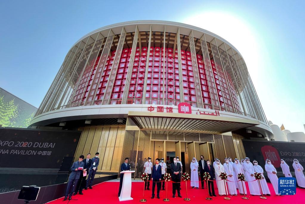這是10月1日在阿拉伯聯合酋長國迪拜拍攝的迪拜世博會中國館開館儀式現場。