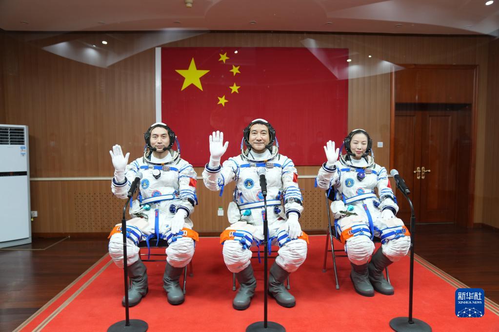 “總指揮長同志,我們奉命執(zhí)行神舟十三號載人飛行任務,準備完畢,請指示!”身著白色的艙內航天服,翟志剛敬禮報告。