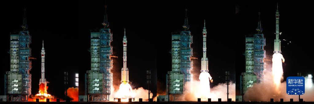 “5,4,3,2,1,點火!”0時23分,在零號指揮員口令聲中,長征二號F遙十三火箭拔地而起,直入蒼穹。