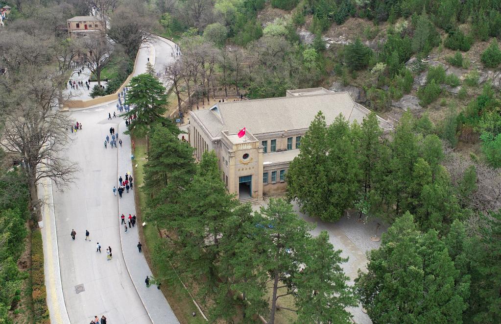 這是2021年4月21日拍攝的楊家嶺革命舊址中央大禮堂。新華社記者 張博文 攝