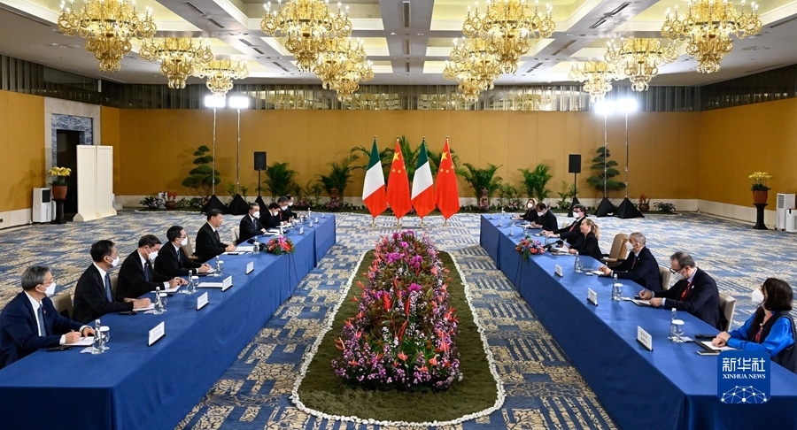 習近平指出,近年來,中意兩國攜手抗擊新冠肺炎疫情,互辦文化和旅游年,在華舉辦“意大利之源——古羅馬文明展”,成為兩國友好交往的生動見證。中意同為文明古國,互為全面戰略伙伴,擁有廣泛共同利益和深厚合作基礎。雙方應該傳承和發揚友好傳統,理解和支持彼此核心利益和重大關切,求同存異,擴大共識,為不同社會制度、不同文化背景國家發展關系樹立表率。