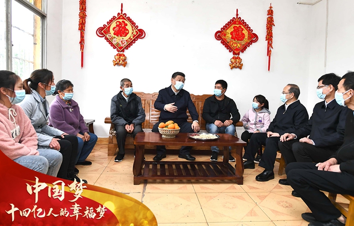 2021年4月25日,習(xí)近平總書記在廣西桂林市全州縣才灣鎮(zhèn)毛竹山村村民王德利家中看望,同一家人圍坐在一起聊家常。