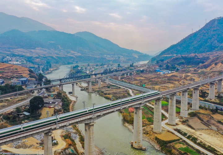 2022年12月26日,蜿蜒千里的新成昆鐵路全線貫通運營。復興號動車組從成都南站發出,沿著現代化的鐵路,奔馳在崇山峻嶺間。