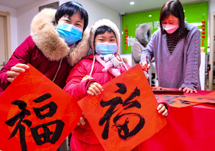 △2023年1月14日,遼寧沈陽鐵西區建北社區開展舞獅、送福字等活動慶祝新年。