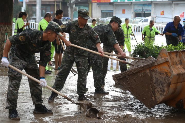 涿州市成立了28支共計8755人的應急搶險隊伍,并與駐涿部隊等協作,全力做好救援保障,并且全部配備了沖鋒舟和大型救援設備,安排部隊官兵和專業應急搶險隊伍24小時待命值守。