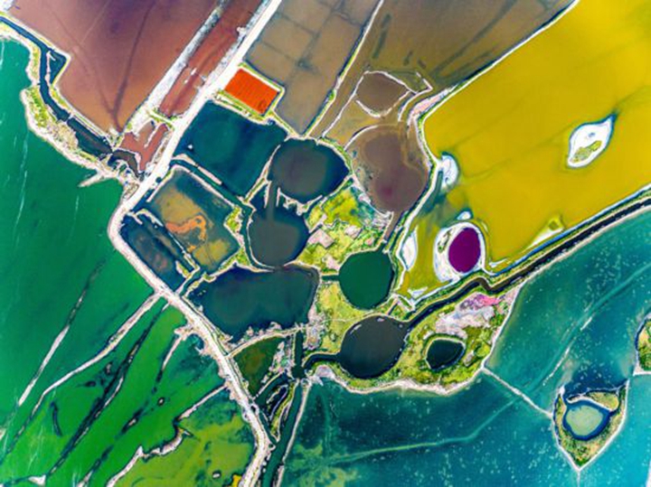在攝影愛好者張衛平眼中,運城鹽湖每個季節都有不同的美,但他獨愛盛夏的“七彩鹽湖”——色彩斑斕宛如一個巨大的調色盤。