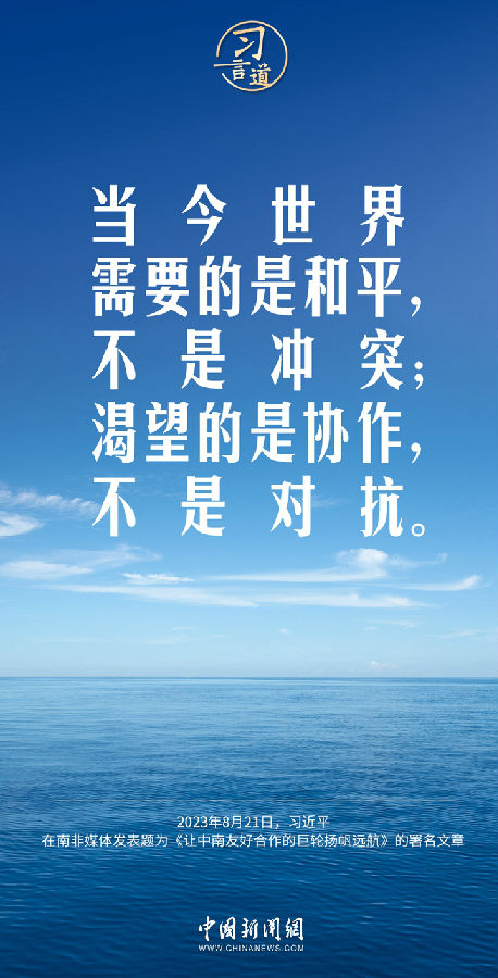 8月21日,在赴約翰內斯堡出席金磚國家領導人第十五次會晤并對南非進行國事訪問之際,國家主席習近平在南非《星報》、《開普時報》、《水星報》和南非獨立媒體網站發表題為《讓中南友好合作的巨輪揚帆遠航》的署名文章。習近平指出——