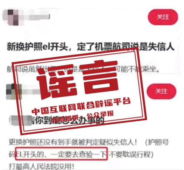 ??真相:國家移民管理局回應(yīng)稱,網(wǎng)傳“護照號碼EL開頭為失信人員”純屬謠傳。護照系我國公民出入國境和在國外證明國籍、身份的證件,普通護照號碼共9位,由1位英文字母+8位阿拉伯數(shù)字按順序組成。2012年我國啟用電子普通護照后,首位英文字母由“G”調(diào)整為“E”,代表電子護照含義。隨著普通護照簽發(fā)量增加,前綴英文字母調(diào)整為2位,由E+1位英文字母組成,英文字母從A至Z順延,其中字母I、O除外。公安機關(guān)出入境管理機構(gòu)審批普通護照申請后,按順序自動匹配空白護照打印制作。因此,申請人所持護照號碼具有隨機性。(來源:國家移民管理局、環(huán)球網(wǎng))