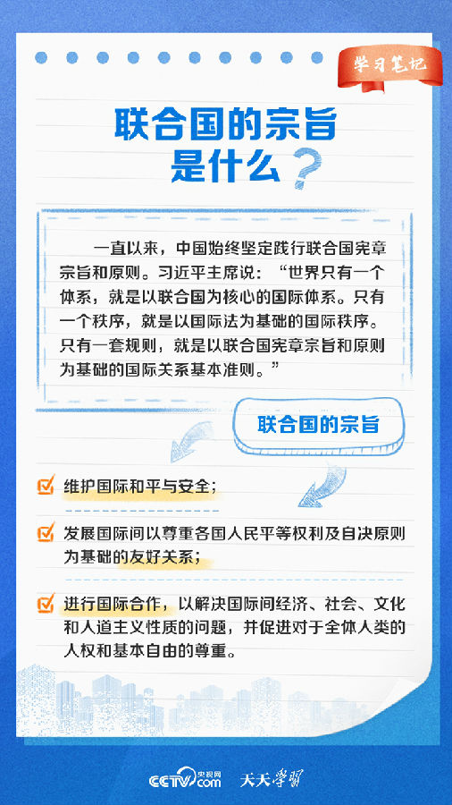 在聯合國成立78周年之際,央視網《天天學習》欄目特梳理聯合國相關知識點及我國在聯合國事業中發揮的重要作用,與您一起學習。