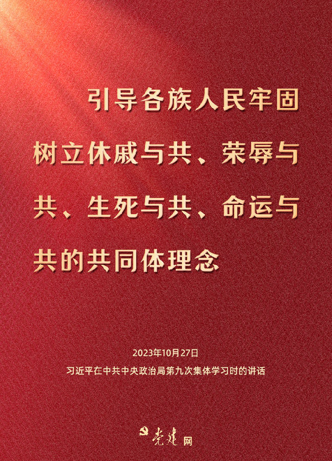 中共中央政治局10月27日下午就鑄牢中華民族共同體意識進行第九次集體學習,習近平總書記主持學習并發表重要講話。快來一圖學習總書記關于鑄牢中華民族共同體意識的精彩論述!