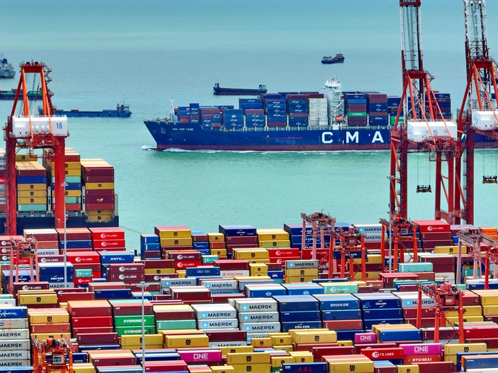 △2023年6月8日,廣東深圳南山區蛇口集裝箱碼頭,一派繁忙的作業景象。