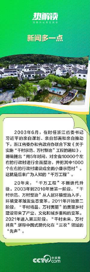 熱解讀 2023年12月19日至20日,中央農村工作會議在北京召開。習近平總書記在對“三農”工作作出的重要指示中,特別強調學習運用“千萬工程”經驗,“集中力量抓好辦成一批群眾可感可及的實事”。