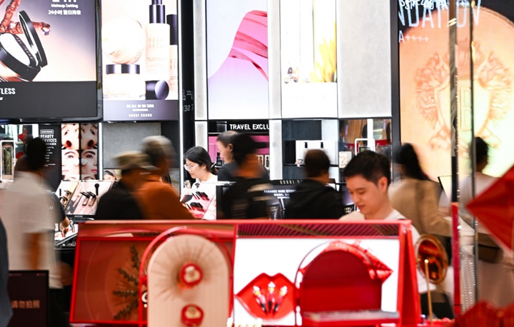 2023年10月28日,消費者在位于海南省海口市的海口國際免稅城內購物。新華社記者楊冠宇 攝